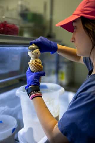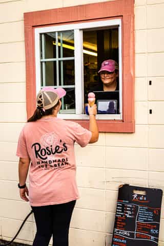 Rosie's Handmade Ice Cream is a hidden gem tucked behind the historic Dublin Theatre, with a welcoming pink glow that signals something special. This small-but-mighty downtown shop serves handmade ice cream crafted with premium ingredients and bold creativity. From the cult-favorite Butter Pecan to unique flavors like Blackberry Cheesecake and Caramel Macchiato, Rosie's regularly offers something new —making each visit a sweet surprise. Customer service is as exceptional as the ice cream, delivered with warmth and personality through their signature pink window. Beyond cones, Rosie's features sundaes, floats, and inventive treats that are as delightful as they are delicious. Whether you're just discovering Rosie's or making a return trip, each dip is a taste of joy in the heart of Dublin, GA.